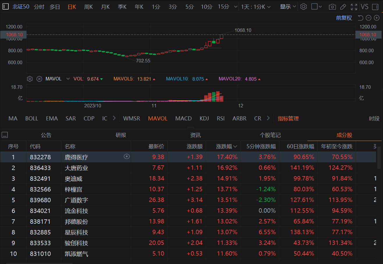 北证50涨幅扩大至超7% 20多股涨超20%